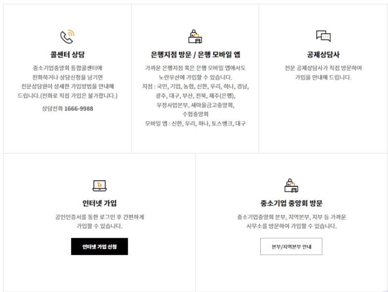 인터넷 가입, 중소기업중앙회 방문을 통하여 가입이 가능합니다.