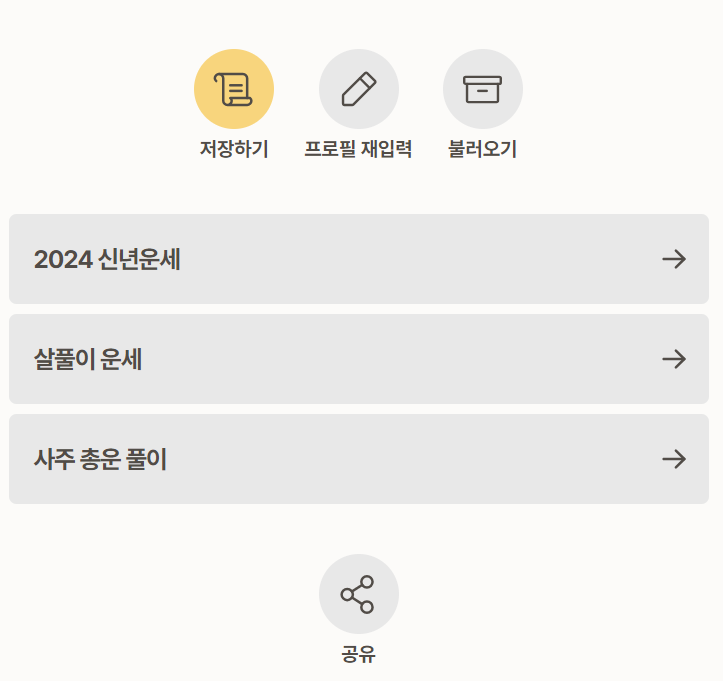 또한, 신년운세, 살풀이 운세, 사주 총운 풀이까지 쉽게 이해할 수 있는 풀이를 확인하실 수 있으며, 언제까지나 재미로 참고해 보시기 바랍니다!