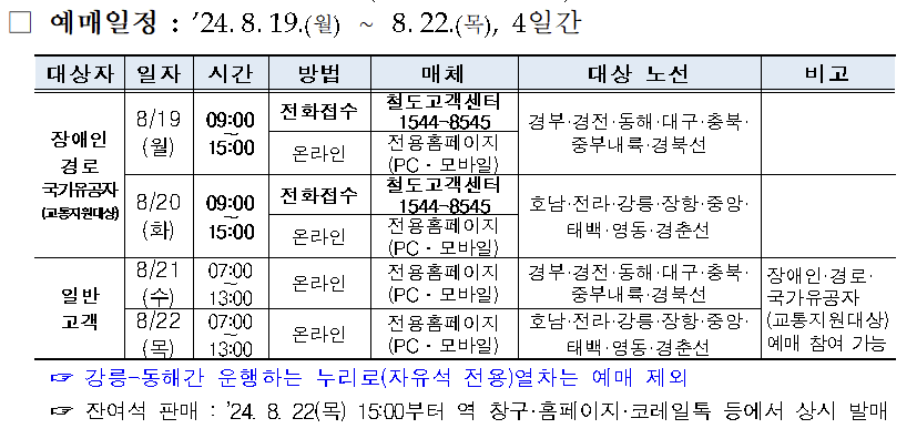 2024 추석 기차표 예매, 예매 일정, 예매 방법