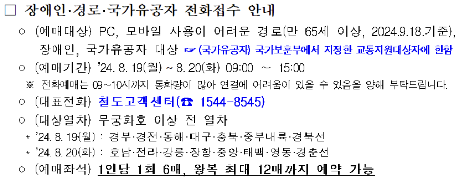 * 장애인, 경로, 국가유공자 전화접수 안내